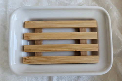 Seifenschale mit Bambuseinlage, rechteckig
