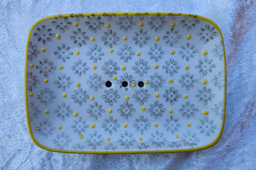 Seifenschale, Blume gelber Rand