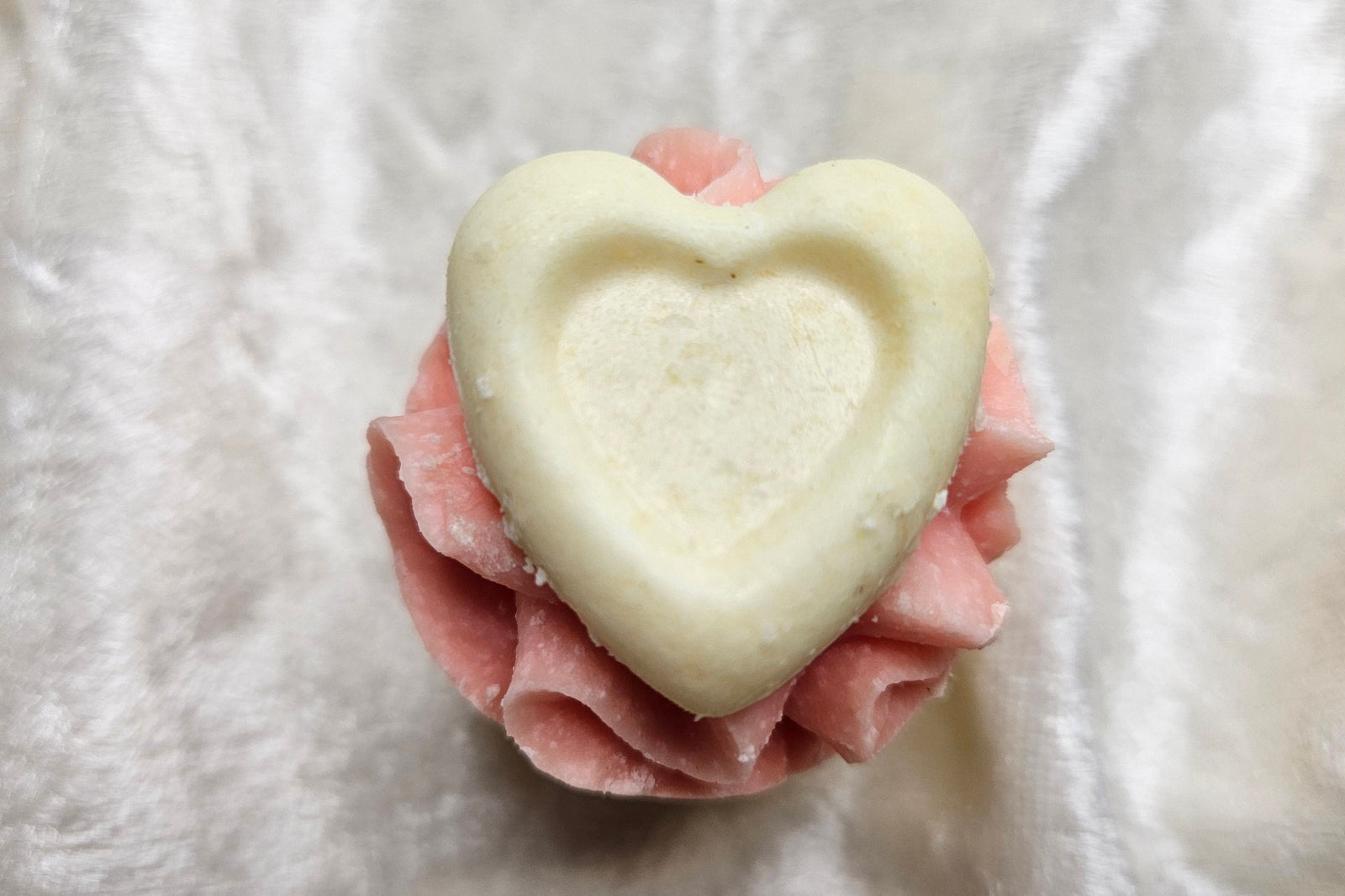 INCI: Zea Mays Starch, Sodium Bicarbonate, Theobroma Cacao Seed Butter, Citric Acid, Butyrospermum Parkii Butter, Parfüm, Sheep Milk, Olea Europaea Fruit Oil, Turpentine, Dimethyl Phenethyl Acetate, Hexyl Cinnamal, Pinene, Citronellol, Geraniol, Polyester-3, CI77002,CI47005, CI77742, CI45410