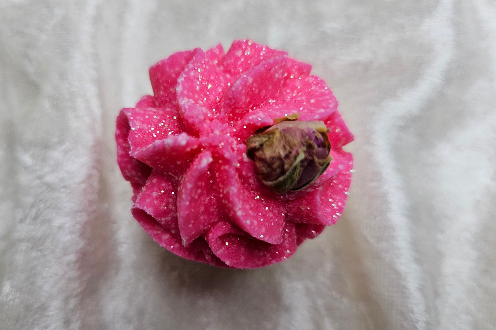 INCI: Zea Mays Starch, Sodium Bicarbonate, Theobroma Cacao Seed Butter, Citric Acid, Butyrospermum Parkii Butter, Parfüm, Rosa Damascena Flower, Sheep Milk, Linalool, Olea Europaea Fruit Oil, Citrus Aurantium Peel Oil, Limonene, Dimethyl Phenethyl Acetate, Geranyl Acetate, Tetramenthyl Acetyloctahydronaphthalenes, Polyethylene Terephalate,  Sodium Sulfate,Sodium Chloride, Polyurethane-11,CI45430, CI15850, CI77000