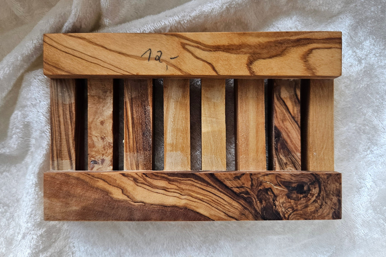 Für alle die es natürlich mögen. Formschöne Seifenablage mit Rillen zum trocknen deiner Seife. Die Maserung ist immer anders und macht jedes Stück zum Unikat. Olivenholz kann im  Nassbereich ausbluten, dies ist kein Makel sondern ein natürlicher Prozess des Holzes.