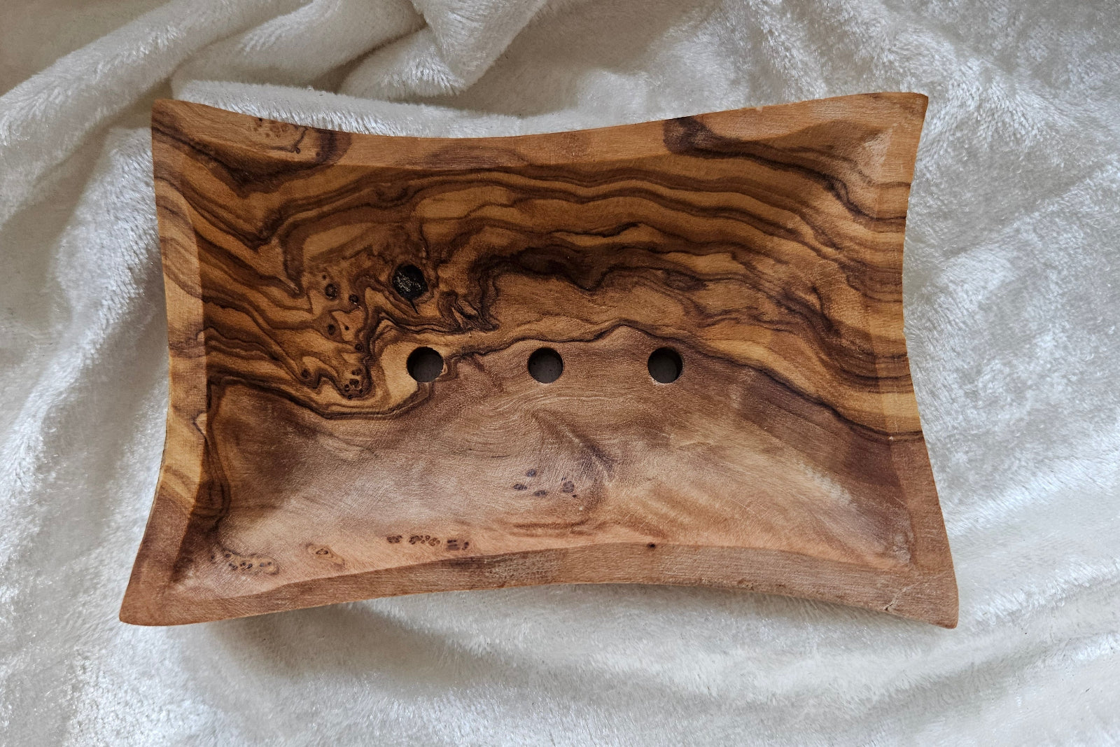 Für alle die es natürlich mögen. Formschöne Seifenablage mit Rillen zum trocknen deiner Seife. Die Maserung ist immer anders und macht jedes Stück zum Unikat. Olivenholz kann im Nassbereich ausbluten, dies ist kein Makel sondern ein natürlicher Prozess des Holzes.