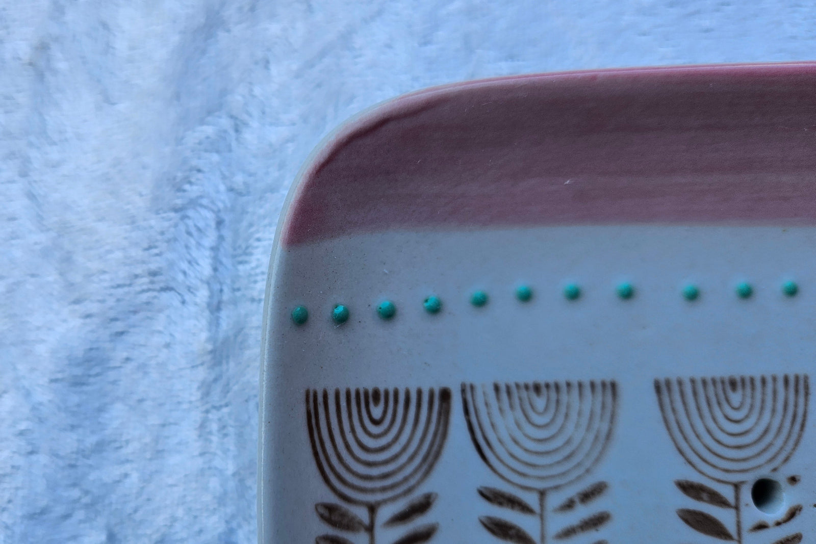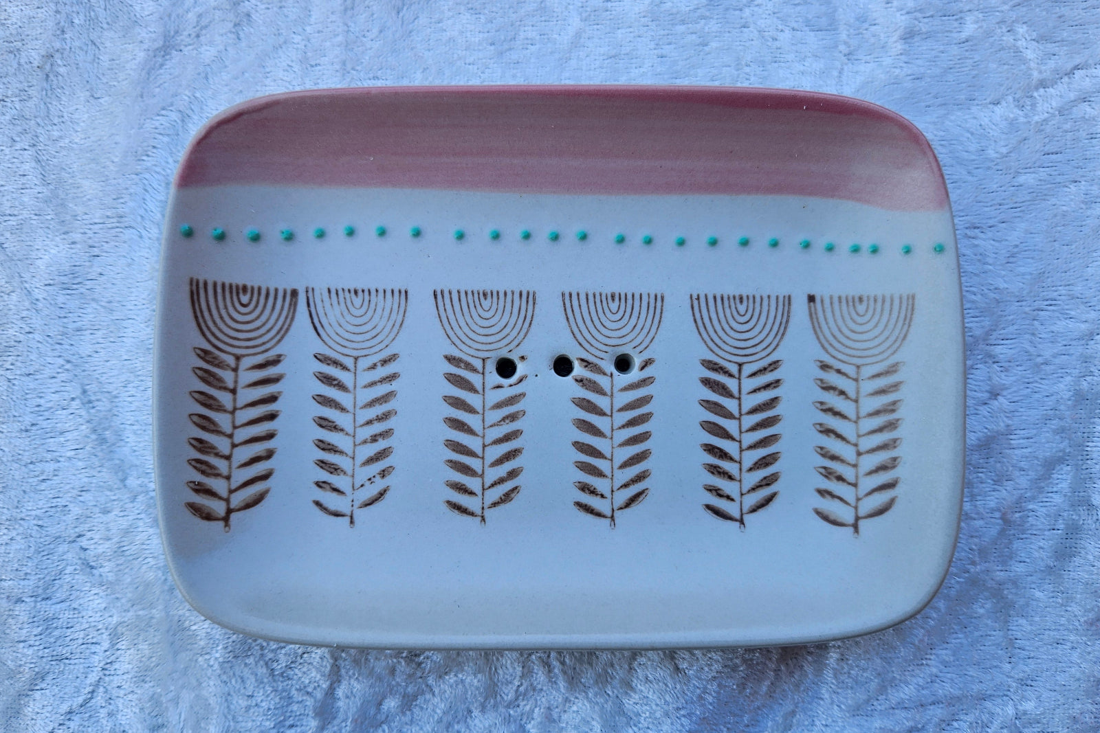 Harmonische Farbkombination in zeitlos schöner Form. Die Farben und Muster sind von Hand aufgebracht und machen jede Schale zum Unikat. Drei Löcher sorgen für ein gutes abtropfen deiner Seifen.