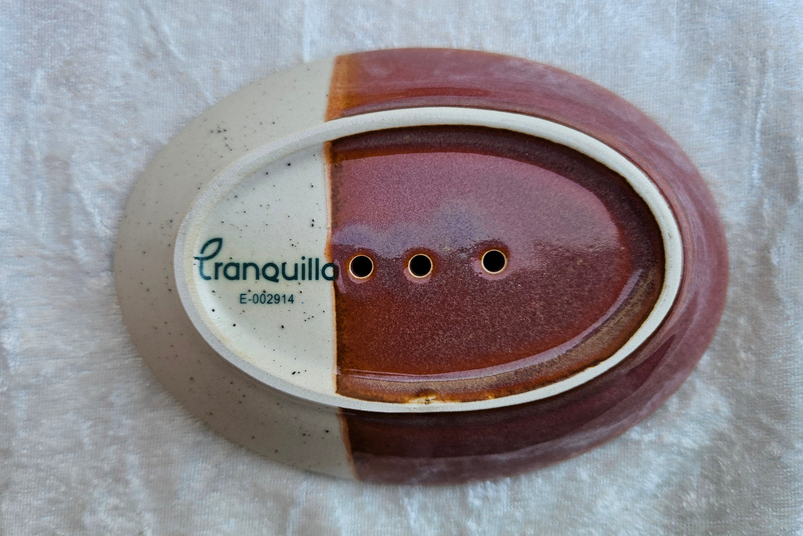 Keramikschale in wunderschönen Brauntönen, jede Schale ist ein Unikat da die Farben von Hand aufgetragen werden. Toller Blickfang in deinem Bad. Die drei Löcher lassen deine Seife immer gut abtrocknen.